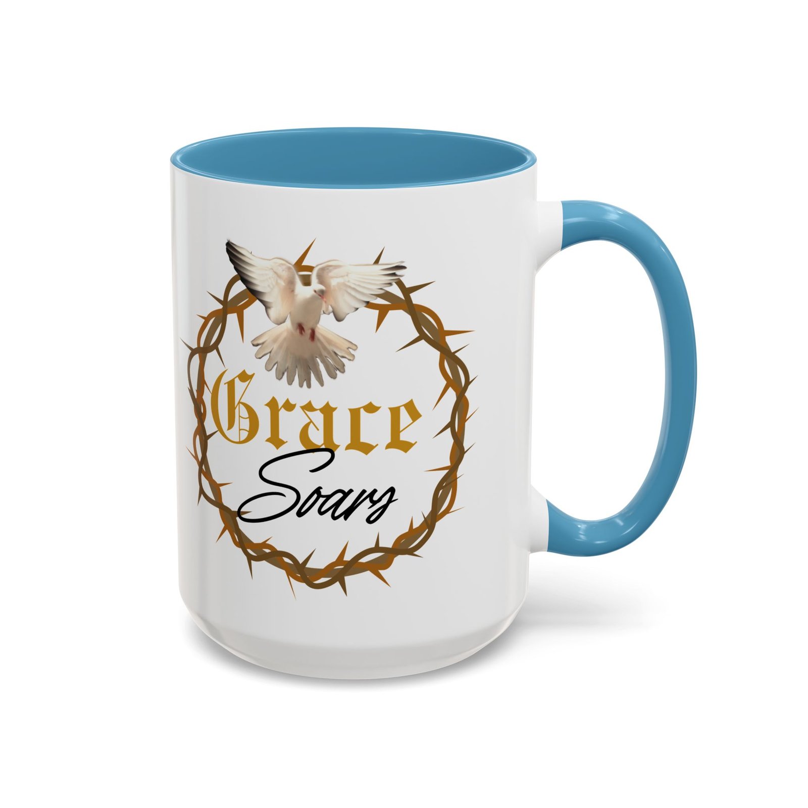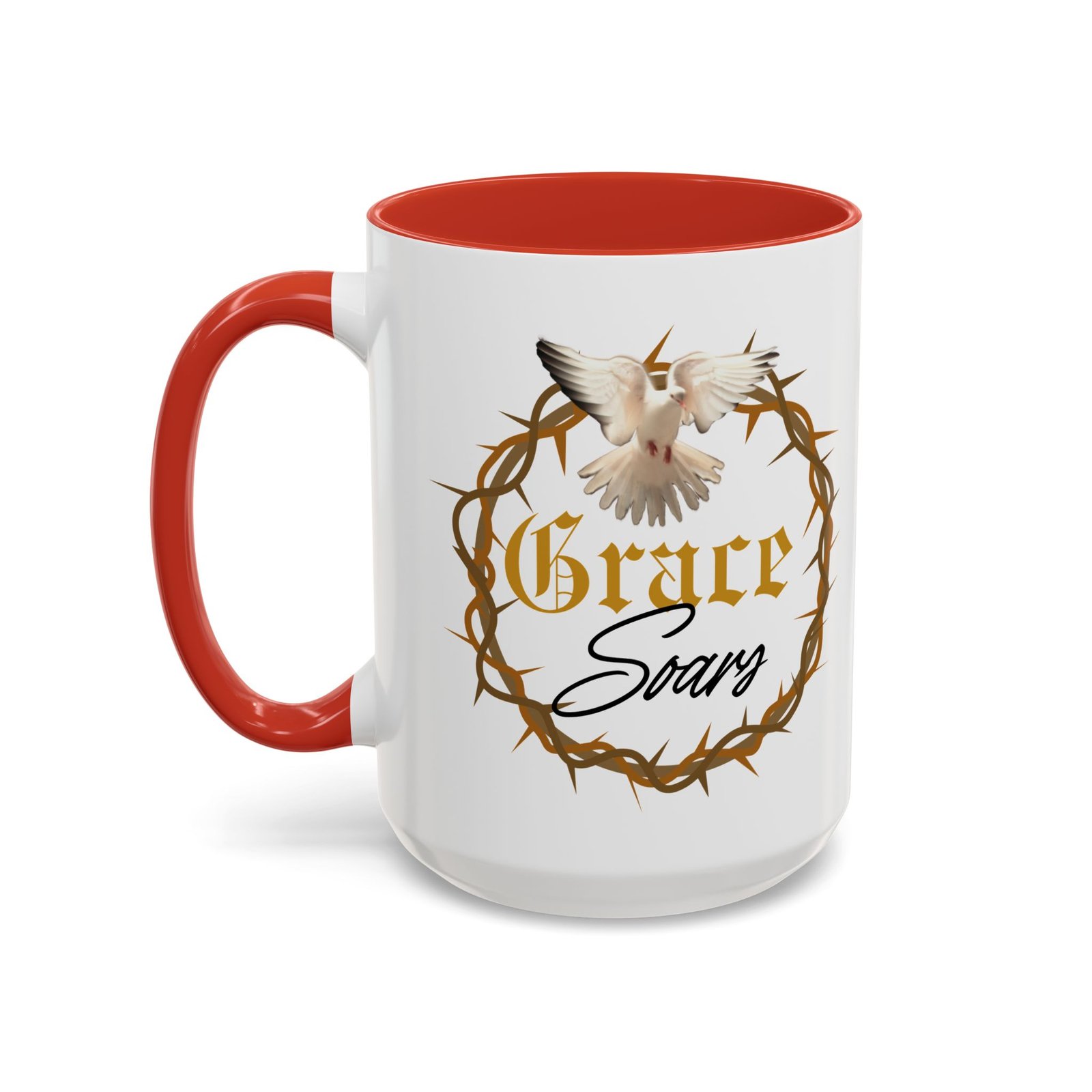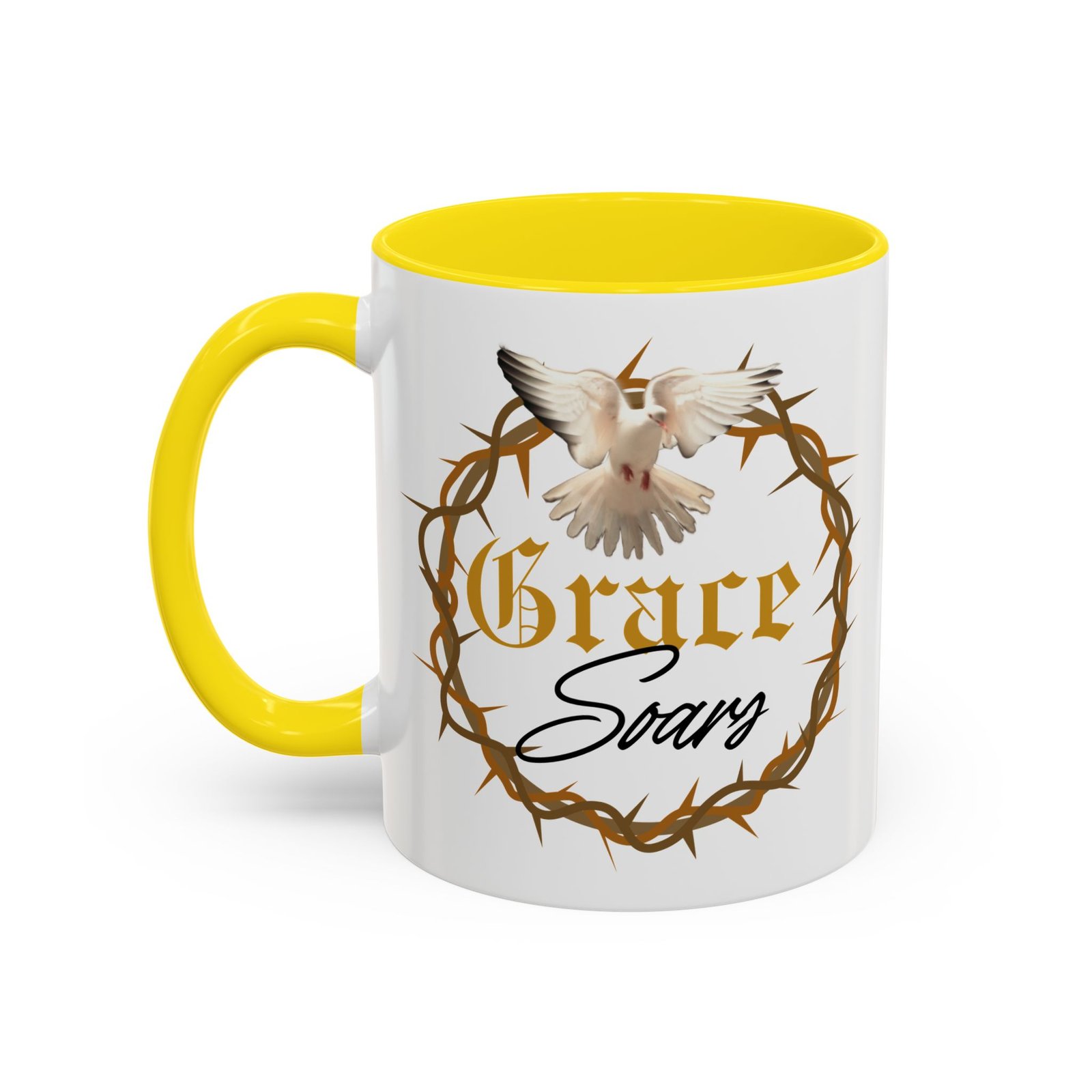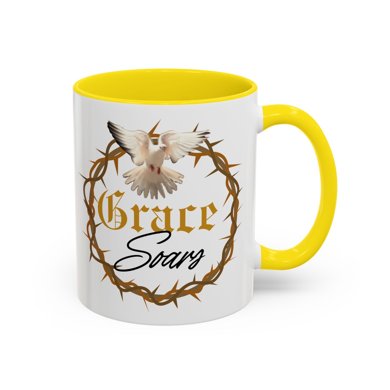 The “Grace Soars” Accent Coffee Mug is a vibrant and eye-catching addition to your morning routine. With its glossy finish and colorful interior and handle options, this mug exudes positivity and elegance. Perfect for enjoying your favorite hot beverage and starting your day on the right note. Ideal for coffee lovers, tea enthusiasts, and anyone who appreciates a touch of grace in their daily life. Suitable for birthdays, holidays, anniversaries, and special occasions.