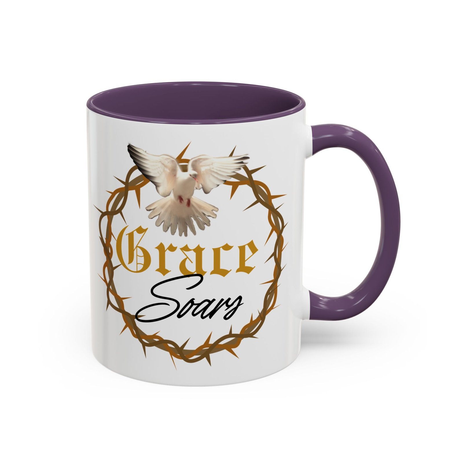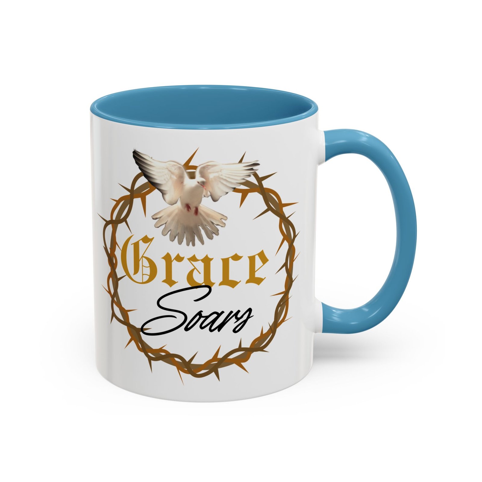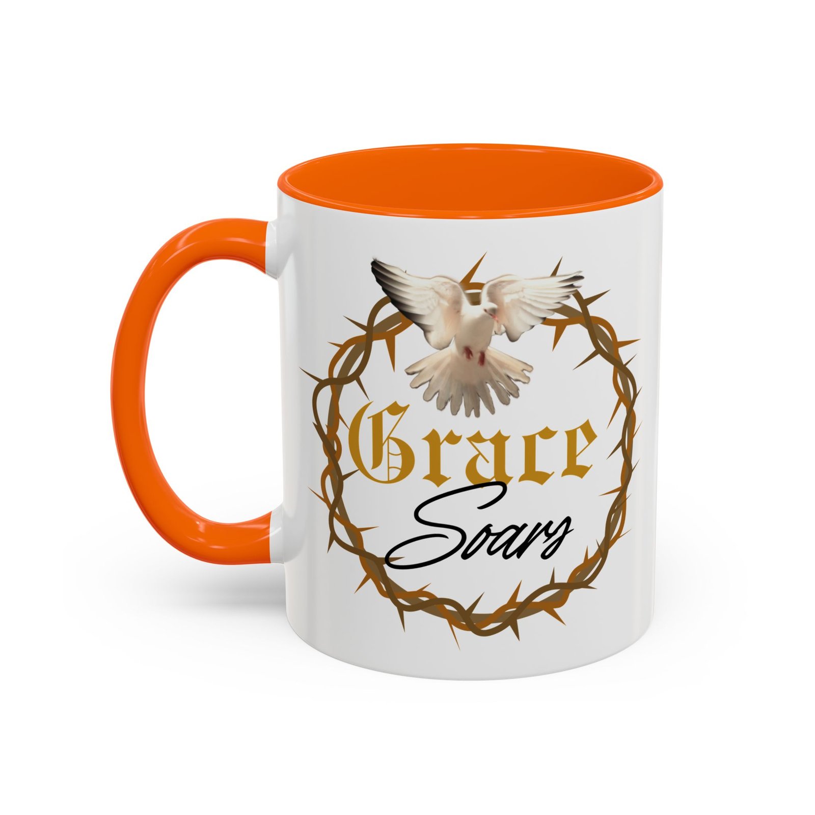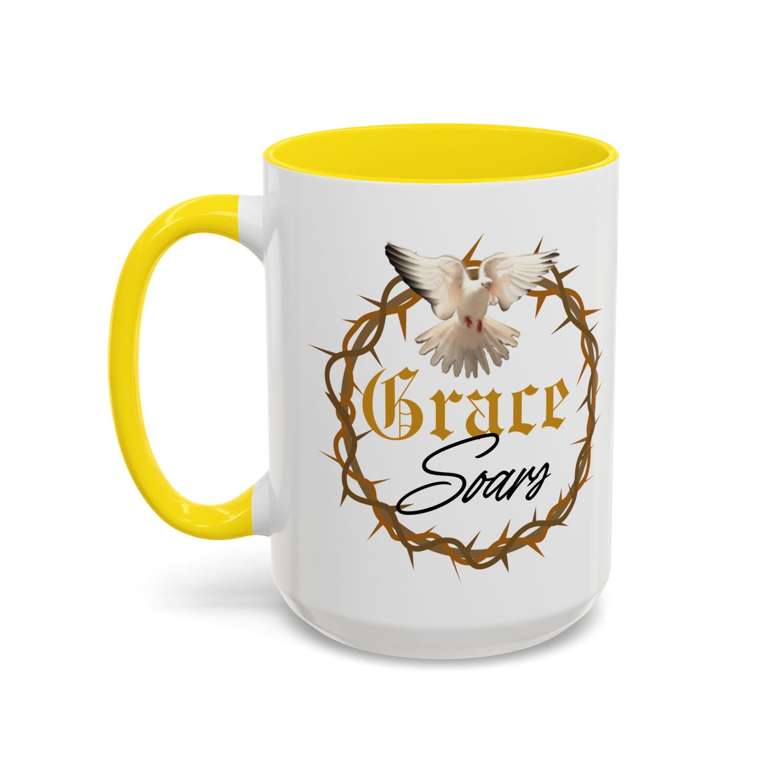 The “Grace Soars” Accent Coffee Mug is a vibrant and eye-catching addition to your morning routine. With its glossy finish and colorful interior and handle options, this mug exudes positivity and elegance. Perfect for enjoying your favorite hot beverage and starting your day on the right note. Ideal for coffee lovers, tea enthusiasts, and anyone who appreciates a touch of grace in their daily life. Suitable for birthdays, holidays, anniversaries, and special occasions.