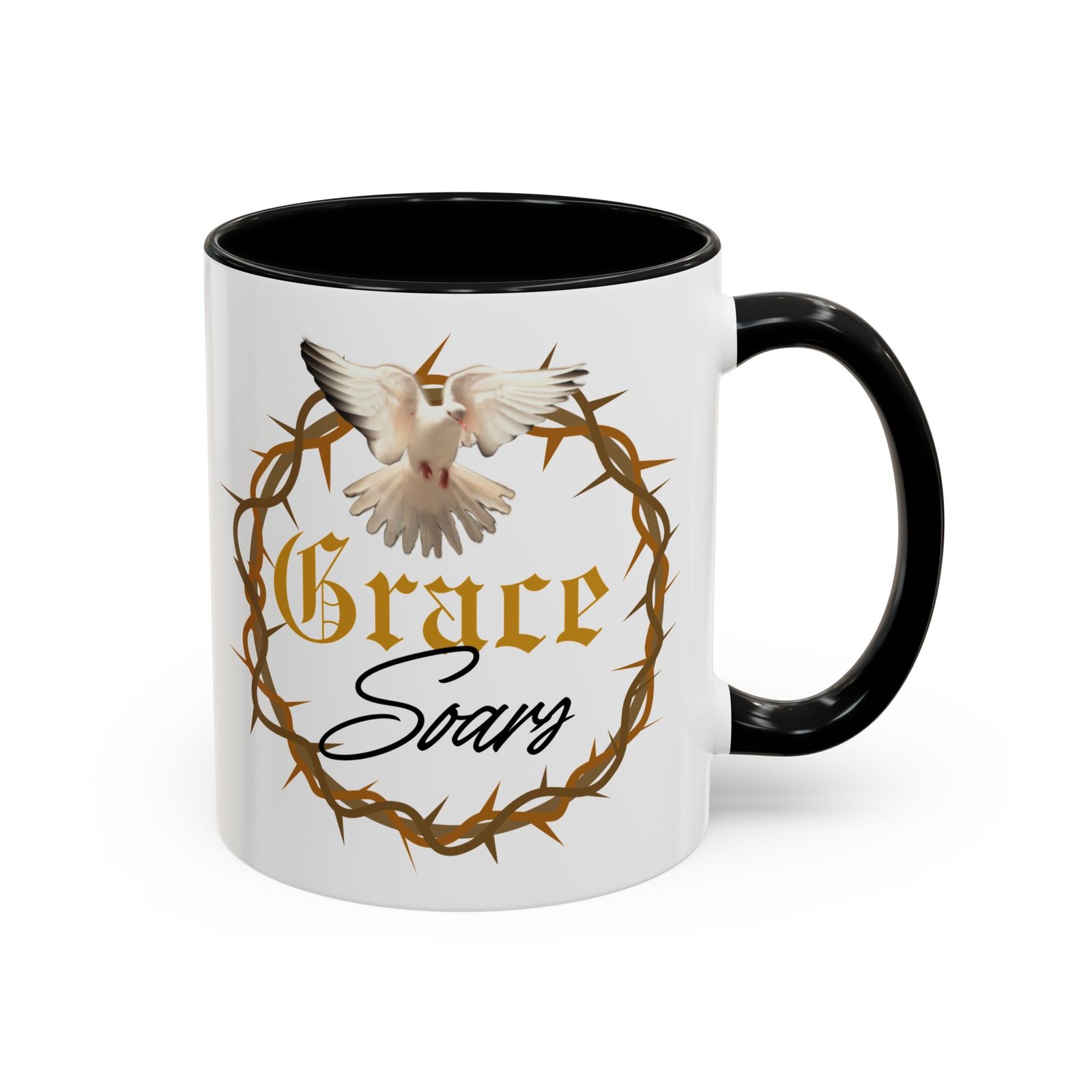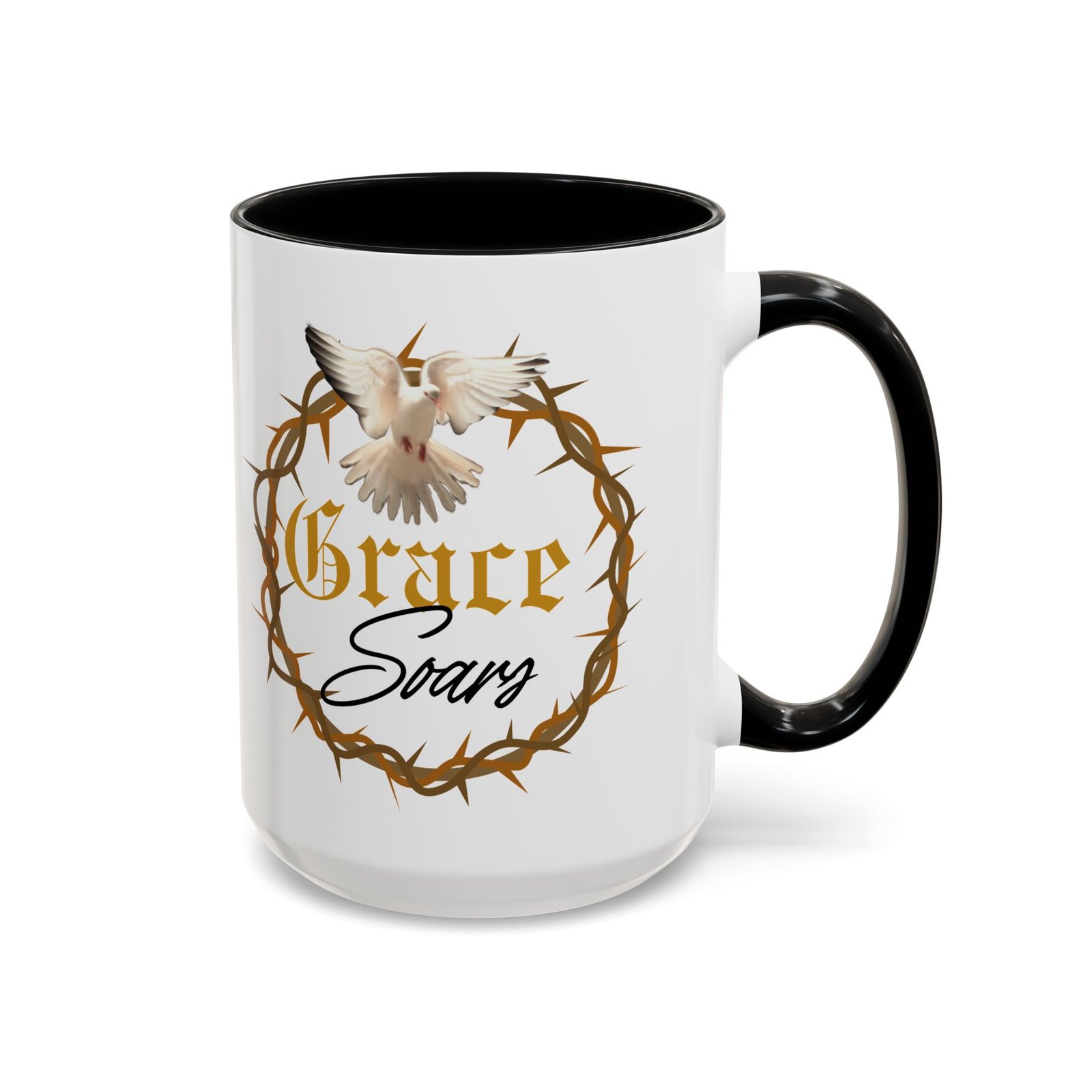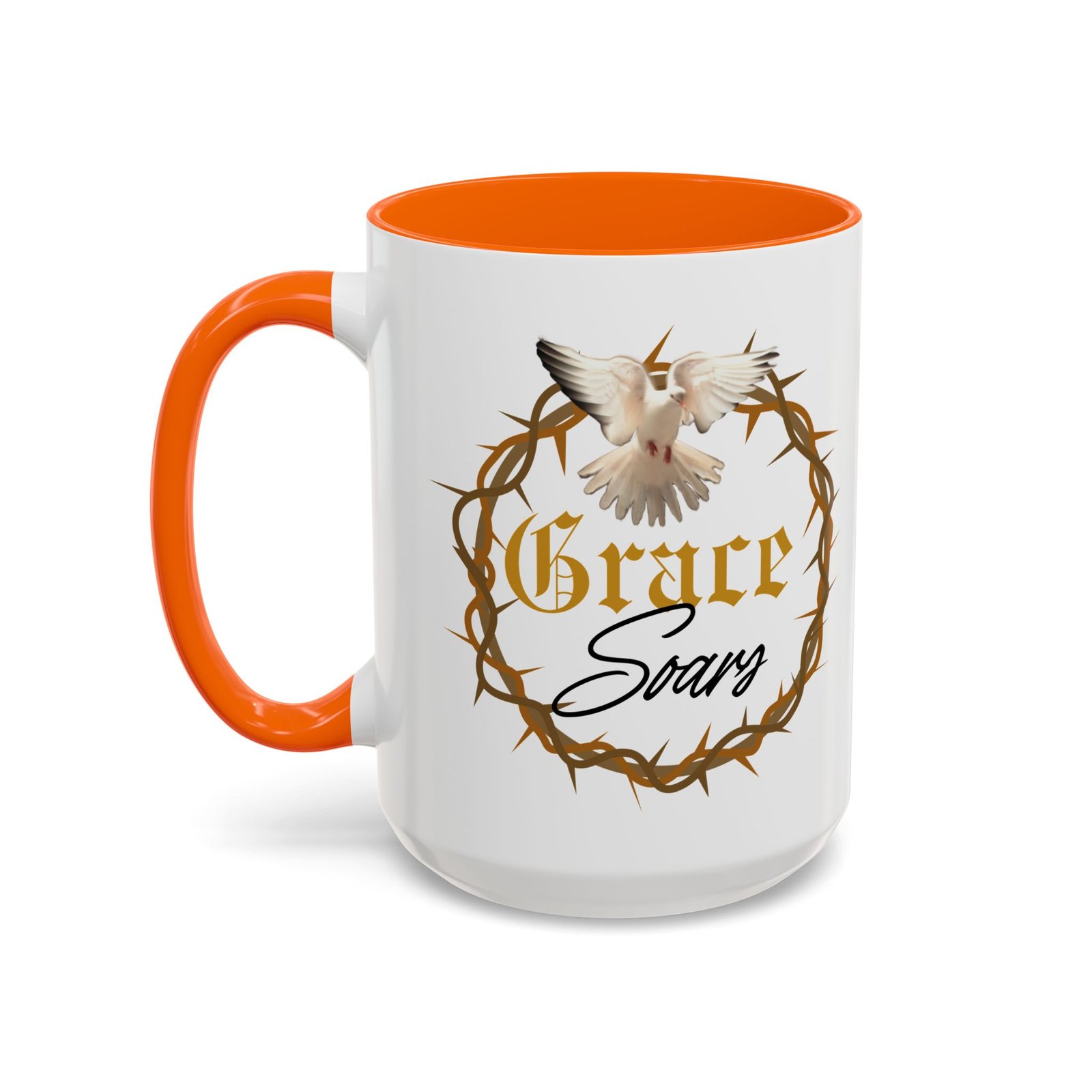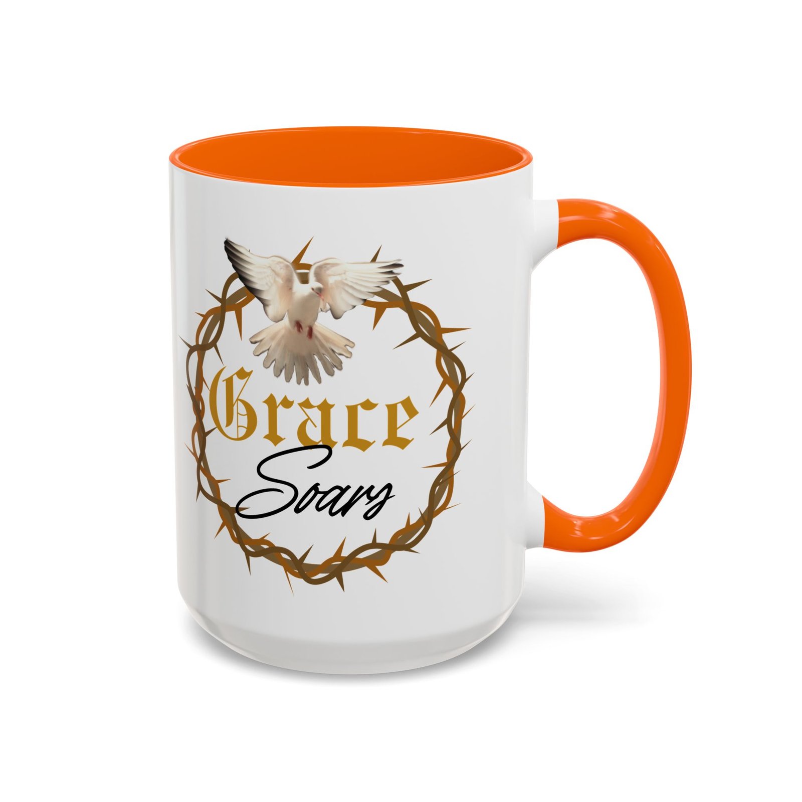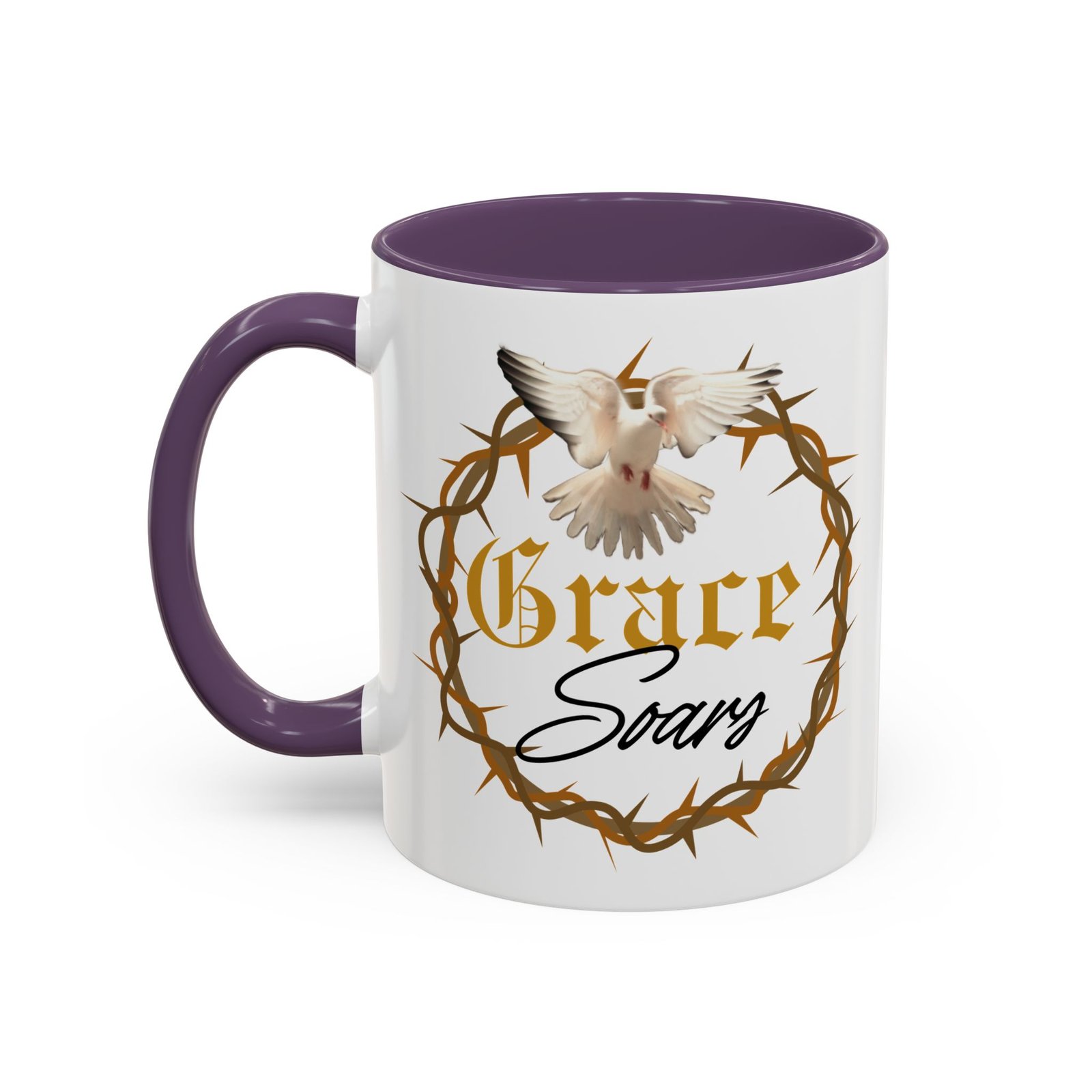 The “Grace Soars” Accent Coffee Mug is a vibrant and eye-catching addition to your morning routine. With its glossy finish and colorful interior and handle options, this mug exudes positivity and elegance. Perfect for enjoying your favorite hot beverage and starting your day on the right note. Ideal for coffee lovers, tea enthusiasts, and anyone who appreciates a touch of grace in their daily life. Suitable for birthdays, holidays, anniversaries, and special occasions.