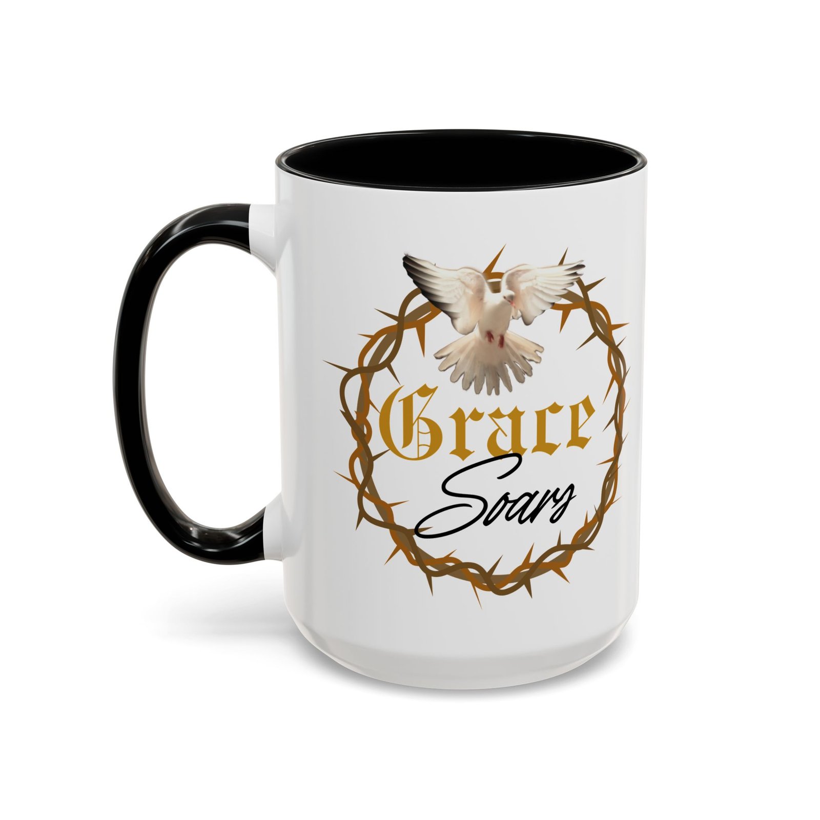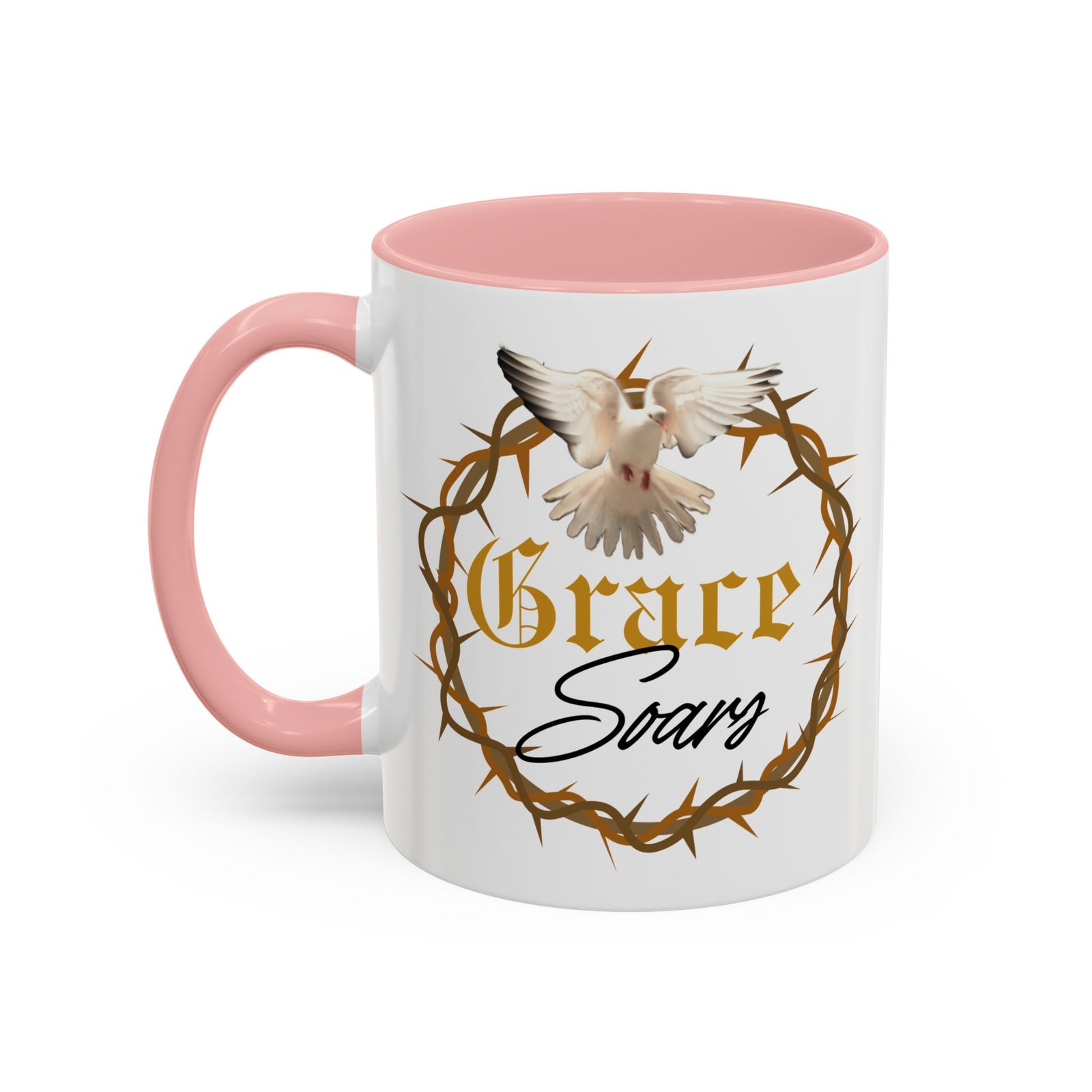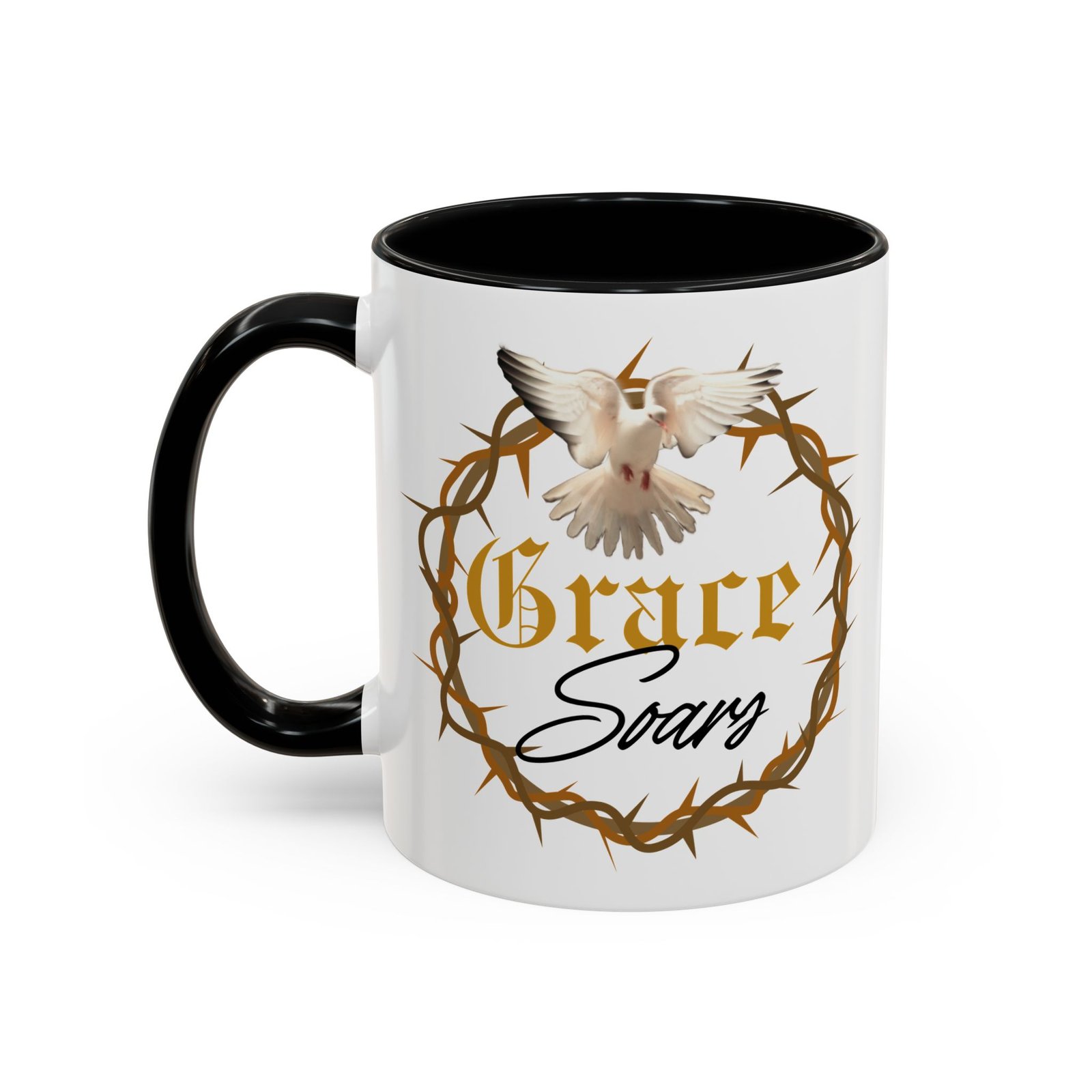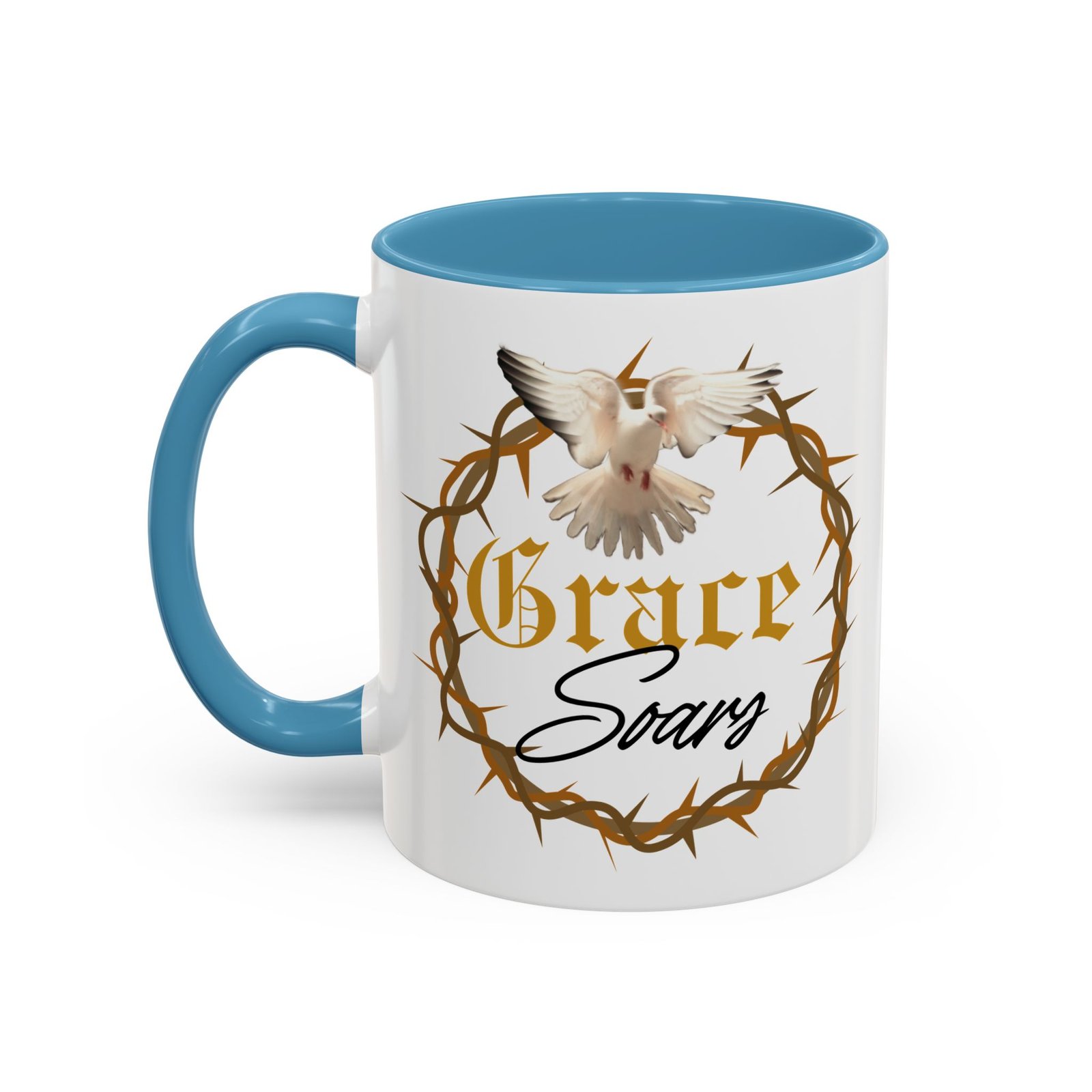 The “Grace Soars” Accent Coffee Mug is a vibrant and eye-catching addition to your morning routine. With its glossy finish and colorful interior and handle options, this mug exudes positivity and elegance. Perfect for enjoying your favorite hot beverage and starting your day on the right note. Ideal for coffee lovers, tea enthusiasts, and anyone who appreciates a touch of grace in their daily life. Suitable for birthdays, holidays, anniversaries, and special occasions.