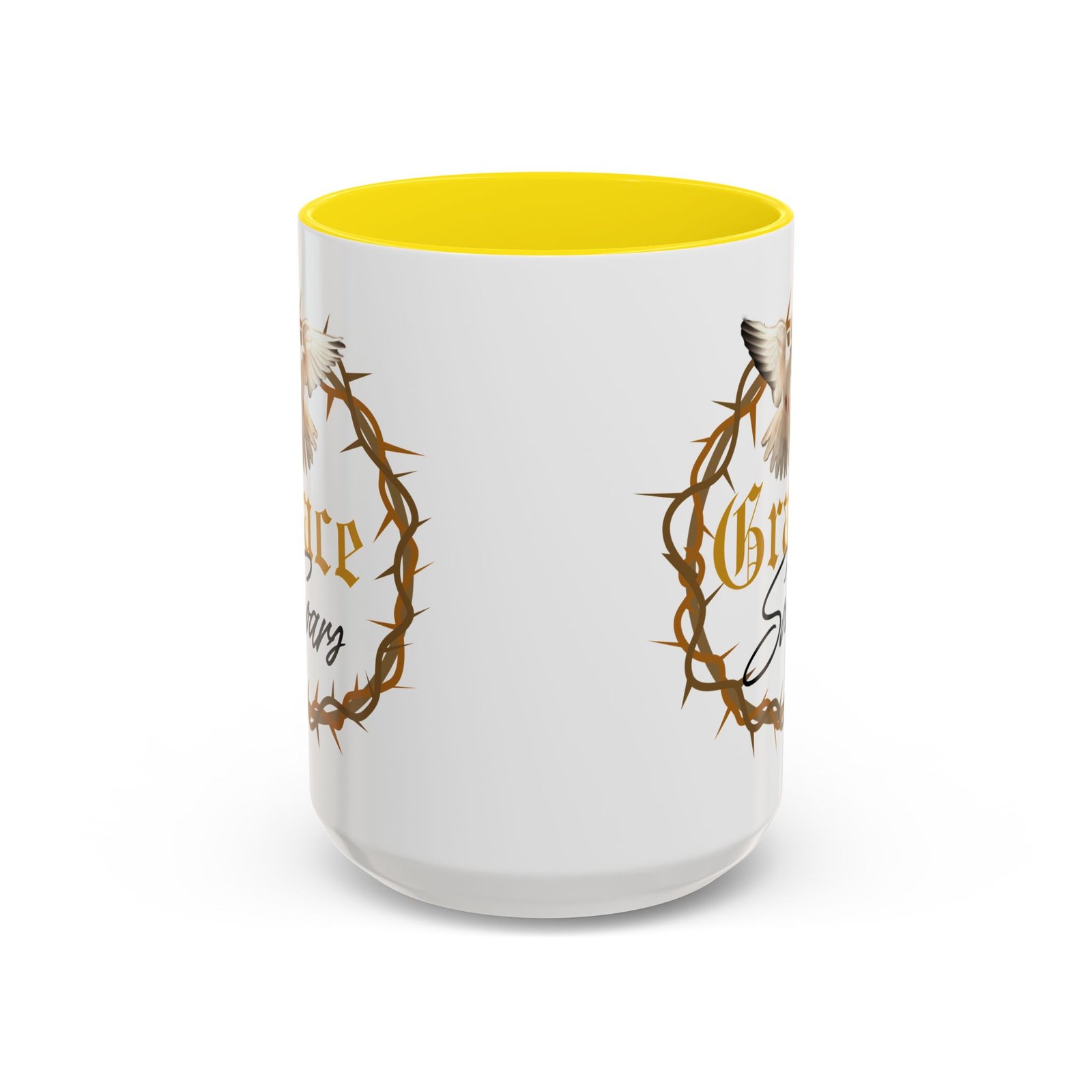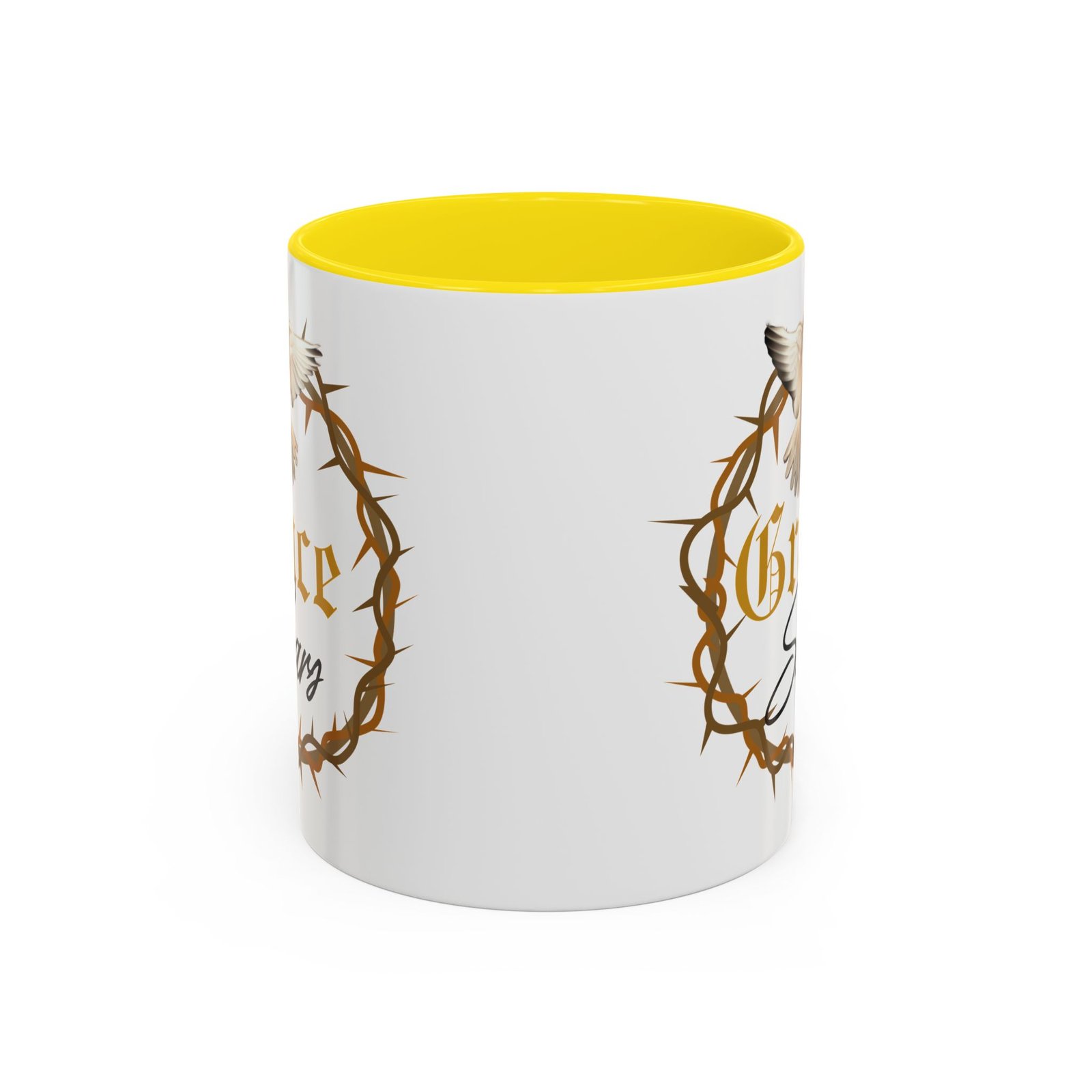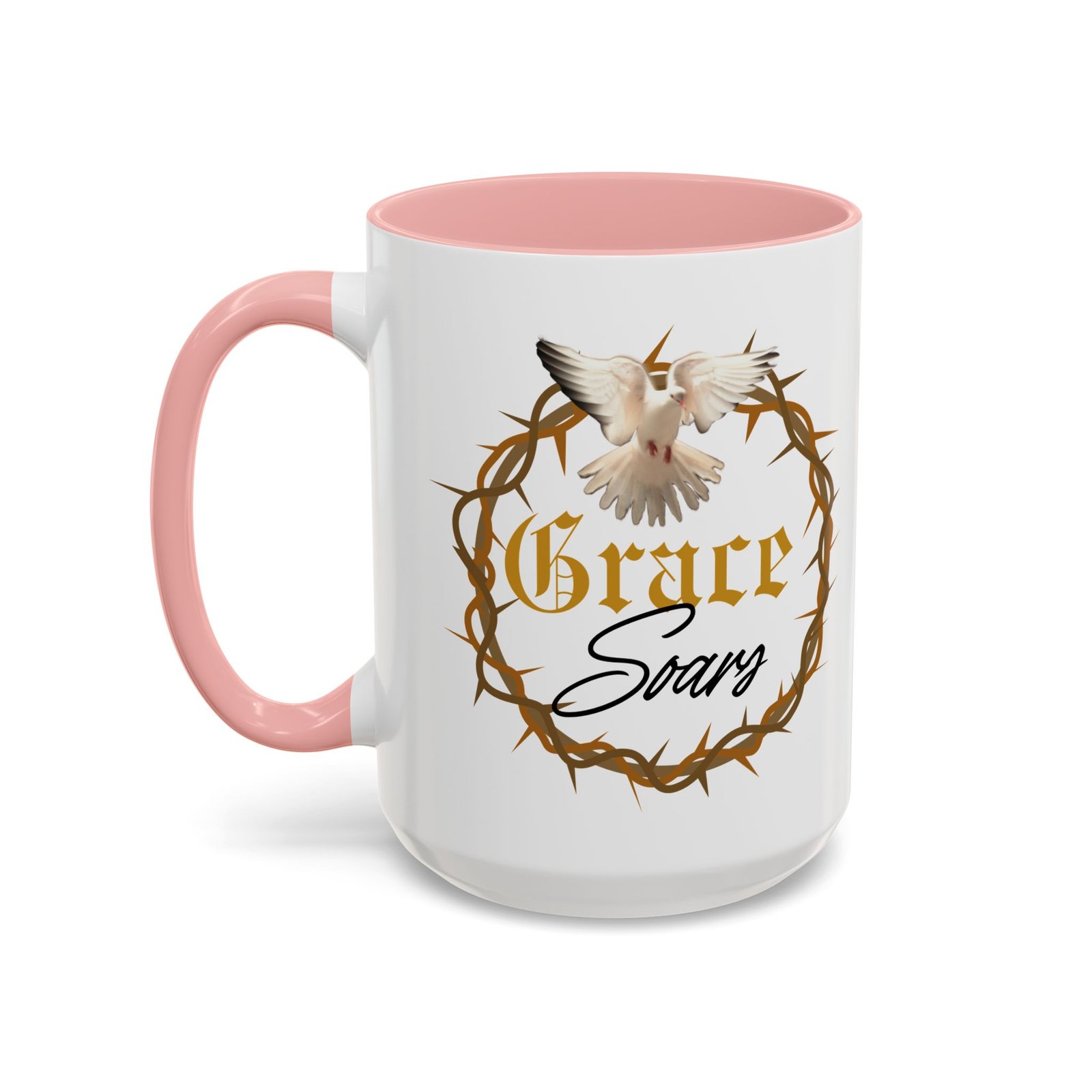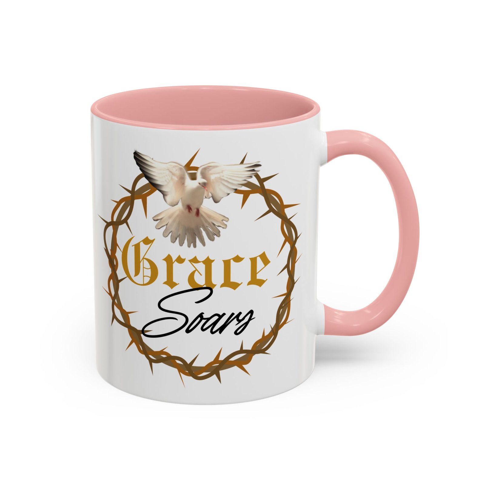 The “Grace Soars” Accent Coffee Mug is a vibrant and eye-catching addition to your morning routine. With its glossy finish and colorful interior and handle options, this mug exudes positivity and elegance. Perfect for enjoying your favorite hot beverage and starting your day on the right note. Ideal for coffee lovers, tea enthusiasts, and anyone who appreciates a touch of grace in their daily life. Suitable for birthdays, holidays, anniversaries, and special occasions.